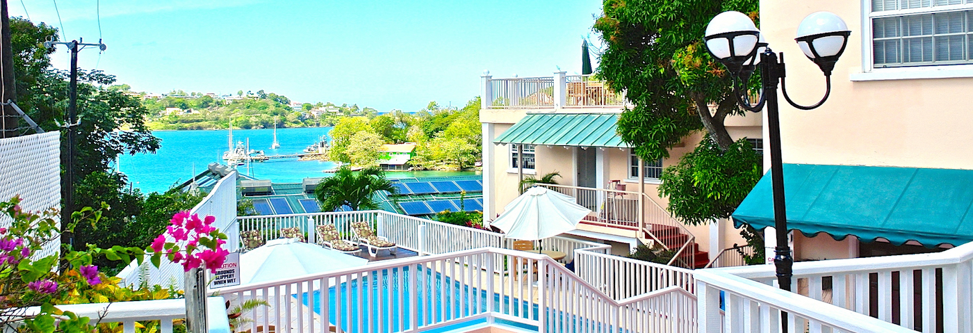 You would find it hard to believe that this tranquil oasis is on the edge of Castries the capital of St. Lucia. It is just above the Vigie Bay Marina on the hill over looking the harbour and the inlet that is a natural sanctuary for many birds and marine life.
